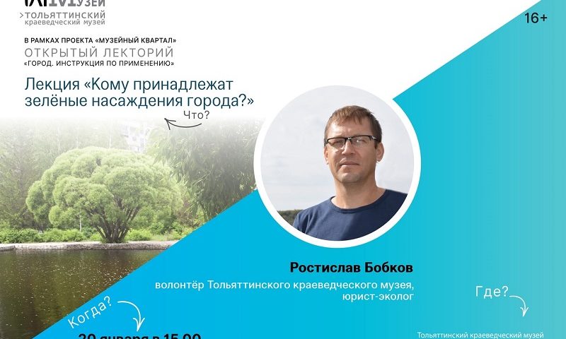 Лекторий Тольяттинского краеведческого музея «Город. Инструкция по применению» приглашает горожан 20 января в 15.00 на лекцию «Кому принадлежат зеленые насаждения города?»