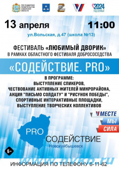 На этой неделе приглашаем жителей города на новое мероприятие областного фестиваля добрососедства "СОдействие.PRO" - ул.Вольская, д.47 (школа №13).