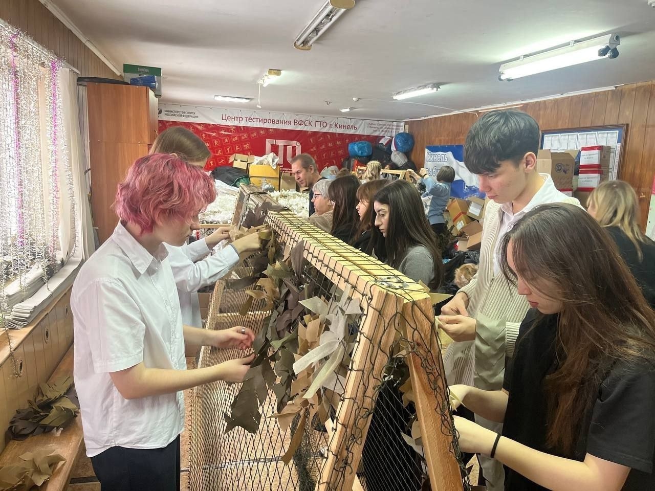 Уже месяц ребята активно плетут маскировочные сети для отправки в зону СВО в пункте волонтёрского движения «Плетём для наших» Помощь нашим г.о Кинель . Вместе с сетями на фронт они отправляют письма - тёплые весточки из дома со словами поддержки для наших бойцов.