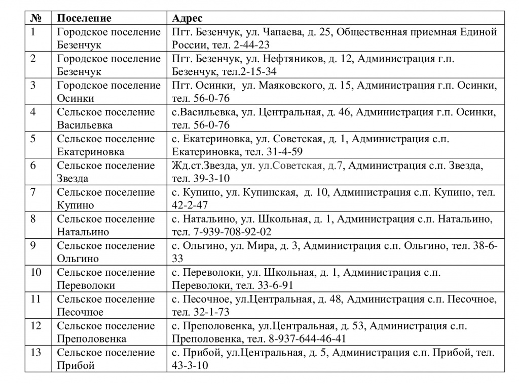 Уважаемые жители муниципального района Безенчукский!