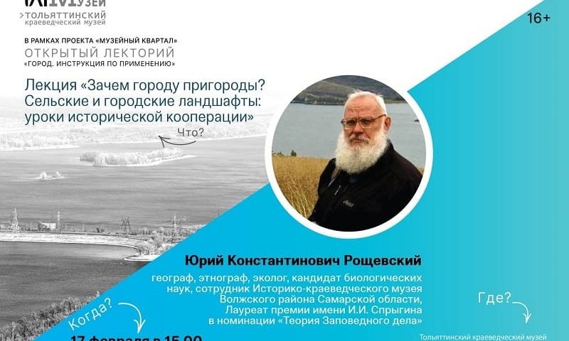 Сельские и городские ландшафты совместного использования. Типовые и уникальные зоны. Города с типовым использованием пригородов. Стратегии экономических, экологических и культурных интересов города и села. Пригород как технология городского разнообразия. Эти темы будут освещены на лекции под названием «Зачем городу пригороды? Сельские и городские ландшафты: уроки исторической кооперации», которая состоится 17 февраля в 15.00 в лектории Тольяттинского краеведческого музея «Город. Инструкция по применению».