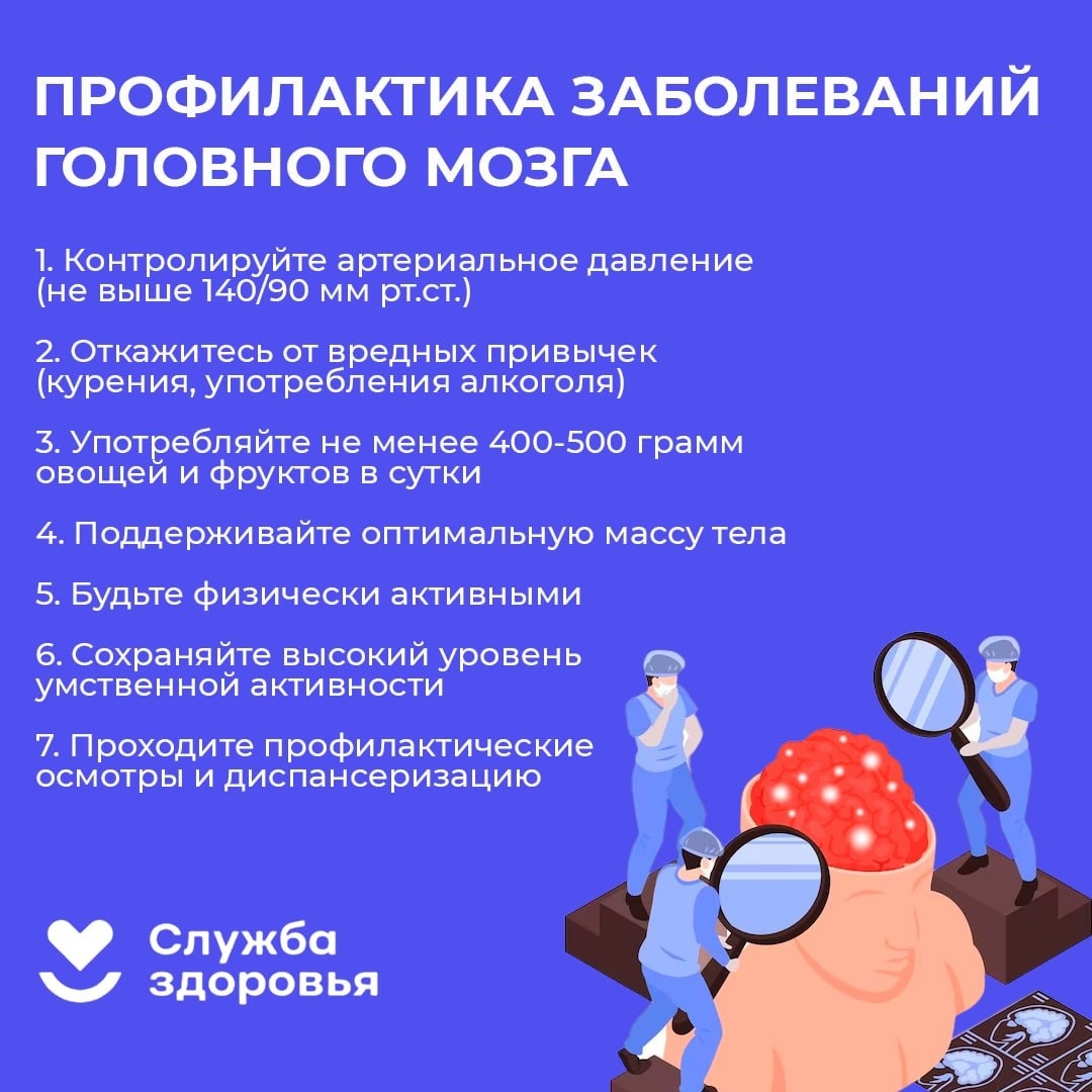 Для сохранения здоровья мозга важно сохранять высокий уровень физической и умственной активности, следить за артериальным давлением и своевременно проходить диспансеризацию и профилактические осмотры.