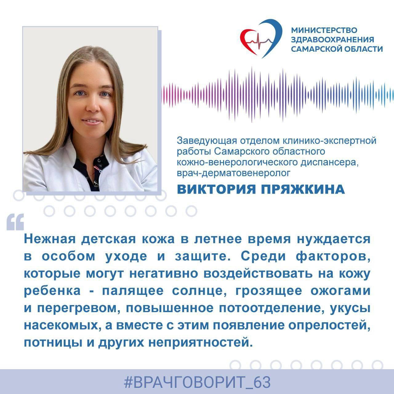 Фото: Минздрав Самарской области Заведующая отделом клинико-экспертной работы Самарского областного кожно-венерологического диспансера, врач-дерматовенеролог Виктория Пряжкина: